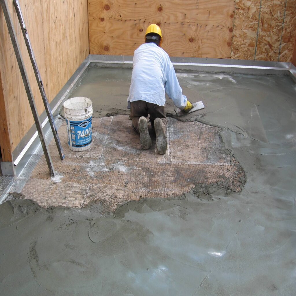 * Primer is used twice! Once over the plywood (Before Crete 6400 layer) and once over the concrete layer before membrane application